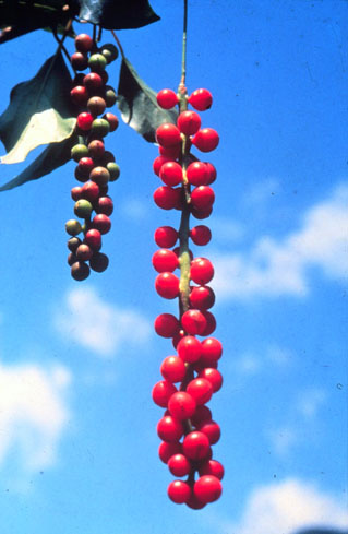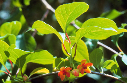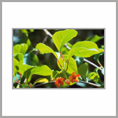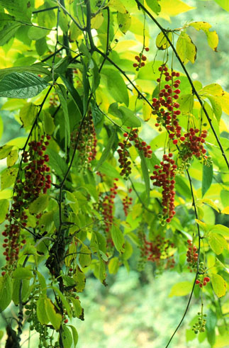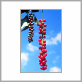 | 記事 | 北五味子是一種野生的水果,在市場上可是買不到的,因為它可是非常的特殊,紅紅的果兒就像是成串的葡萄般,像一長串的紅色珠鍊,鮮紅欲滴般讓人直想嚐嚐它的味道,想那滋味應該是不錯的,只是如果你是如此一廂情願的認為,那你就錯了!因為如果你將北五味子洗淨後整個放進嘴裡,初時甜中帶酸的果肉,口感不錯,但若是意猶未盡的咬碎它的種子時,馬上會有苦、辣、鹹的味道出現,一個果實有五種味道,奇妙吧!其實這也是「五味子」名稱的由來。稍具中藥常識的人都知道,五味子是一種著名的滋補強壯藥,效用十分廣泛。 |