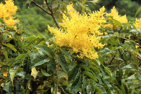| 記事 | 雖然鹽在日常生活中是一種很平常的調味料,但在山居的生活上並不容易取得鹽分,那住在山裡的人,或是登山遠行的人,要如何找到鹽的來源呢?其實在山上就有一種植物的身上,含有鹽分,那就是鹽膚木!在它的果實內含有鹹味物質,以前原住民常採它的果實,取其內的鹽分食用,以補鹽分的不足。它盛產於全島海拔兩千公尺以下的山野,較稀疏的次生林內頗為常見;初夏至初秋可採得嫩葉來食用,晚夏至中秋可採食它的花粉,中秋至初冬則可採收其果實,請莫錯過採集品嚐的良機。 |