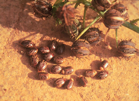 | 記事 | 蓖麻的花有一個奇特的現象,那就是雌花居然看起來兇惡剛強,雄花反倒顯得溫文柔弱,因為雌花全身長滿了刺;而雄花則是全體呈淡淡的黃色,不長任何棘刺。雄花在開過之後立即凋萎,雌花則結成一個個豐盈的果實,等成熟後,取下種子可以榨油,是一種良好的潤滑油原料,同時也是一種良好的瀉劑。它原產非洲,目前在全省各地荒野、河床邊及低海山地,處處有其零星或廣大的族群。 |