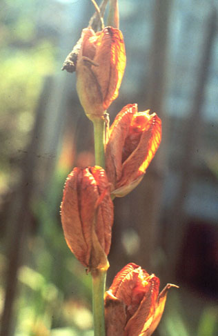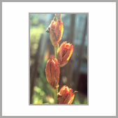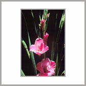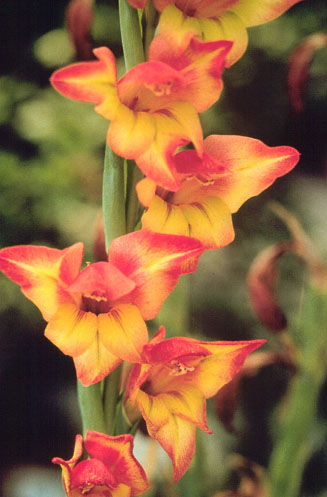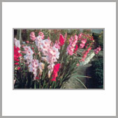 | 紅花唐菖蒲近攝 | | 尖瓣形唐菖蒲 | | 唐菖蒲果實 |
