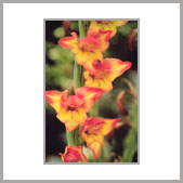 | 記事 | 唐菖蒲原產於地中海沿岸,目前世界各地所栽培者,皆是人為的雜交品系。台灣最早於西元一九O八年自日本引進,以後又陸續有園藝人士及學術單位自歐美各地引進栽培,不但種類繁多,栽種的面積也逐漸擴大,因為具有花色豔麗、花期長久、花莖細長等特性,用來做為花藝設計、製作捧花和花籃,皆十分適宜。 |