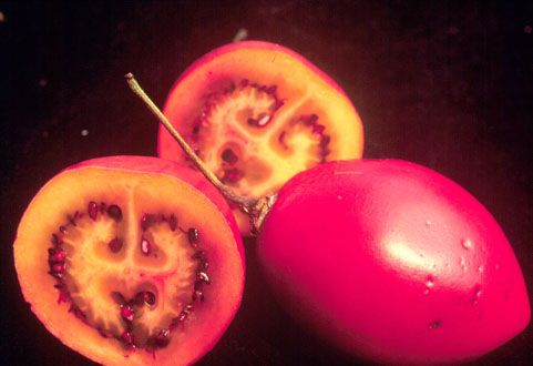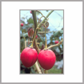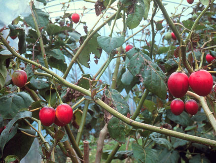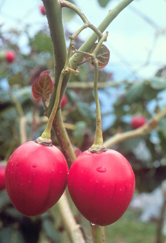 | 記事 | 蕃茄是一種蔬菜,也是一種水果,相信大家都知道,但是對於長在樹上的蕃茄,可能就完全陌生了。樹蕃茄是長得像樹一樣的茄科植物,高度是一般蕃茄的二至六倍,不過它的果實不大,差不多只有5公分左右而己,比起壯碩的大蕃茄,可遜色多了。大個兒結小果兒,奇妙吧﹗不過由於種植數量不多,所以平常見到它的機會也不多,可以期待它能及早適應台灣氣候,讓大家嚐嚐它的味道。 |