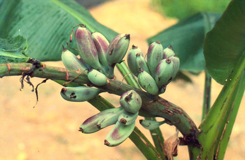 | 記事 | 哇!山上有種香蕉喲?此蕉非彼蕉,這是野生的,和我們吃的香蕉不同,是有種子的台灣芭蕉,與香蕉是近親呢!它有一顆顆黑色的種子,就躲在它的果肉中間。可別以為香蕉沒有種子,那是因為它經過許多次的品種改良,種子都退化了,才如此「好吃」的!台灣芭蕉盛產於全島海拔一千八百公尺以下之山區,經常成群繁生,族群數量驚人。不慎在低、中海拔山區迷途時,若身邊糧食不足,的確是一種良好的救荒求生野菜。 |
